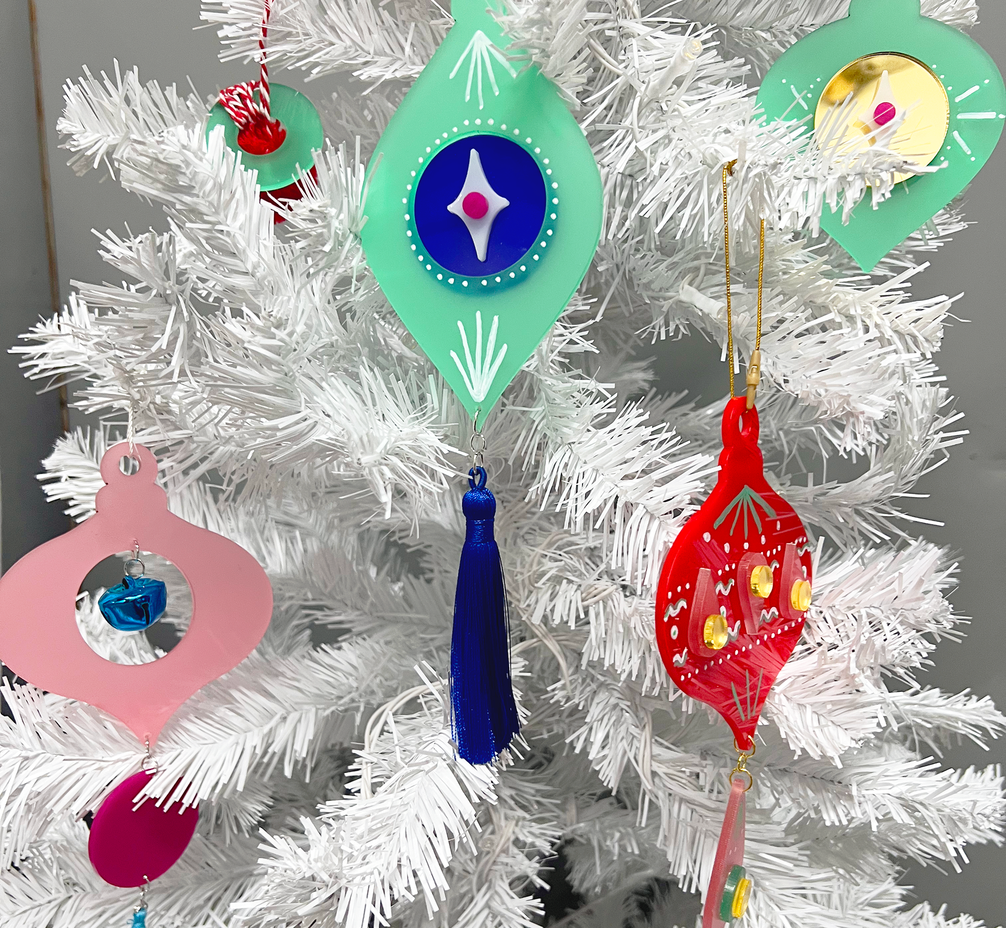 Step into Ghost Rocket Makerspace and get hands-on with mid-centruy modern design meets cutting-edge maker technology. Inspired by classic hand-painted glass ornaments and iconic Shiny Brites, this workshop lets you create two custom acrylic ornaments (or small wall hangings) with our CNC laser doing the precision work.